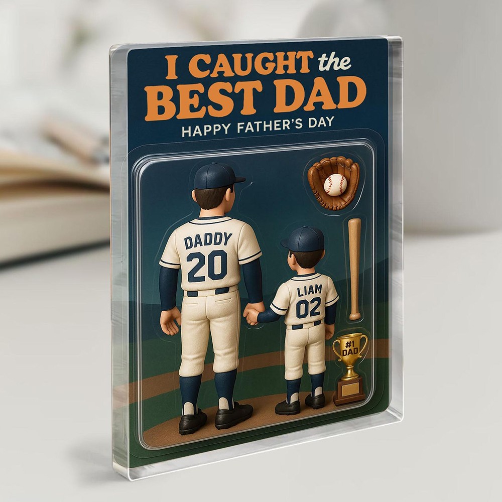 I Caught The Best Dad Baseball Gift Custom Figure Acrylic Block Personalized Fathers Day Gift