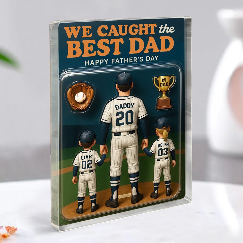 I Caught The Best Dad Baseball Gift Custom Figure Acrylic Block Personalized Fathers Day Gift