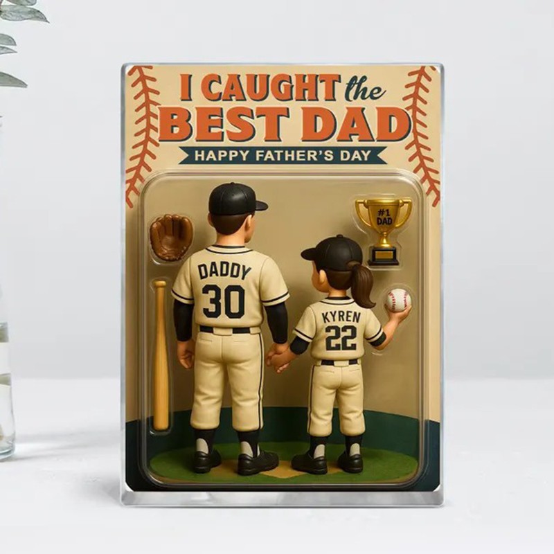 I Caught The Best Dad Baseball Gift Custom Figure Acrylic Block Personalized Fathers Day Gift