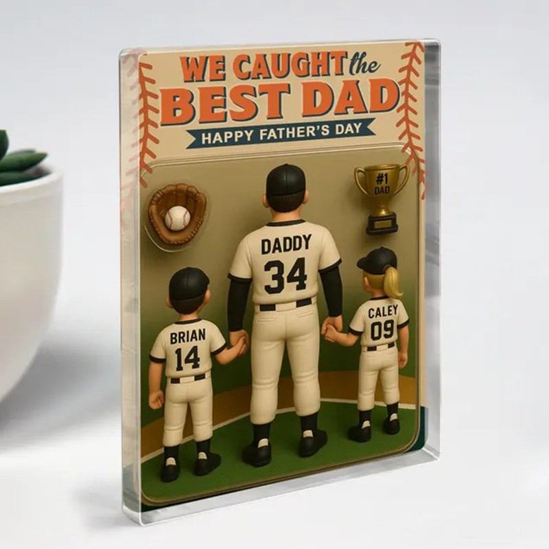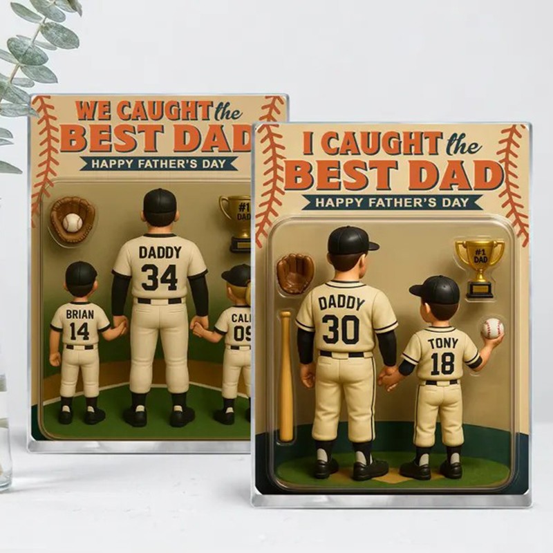 I Caught The Best Dad Baseball Gift Custom Figure Acrylic Block Personalized Fathers Day Gift