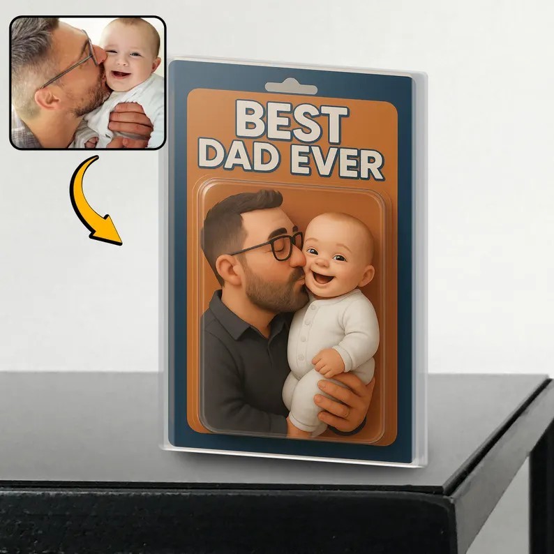 Personalized Photo Dad And Kids Action Figure Acrylic Block Plaque For Father's Day Gift