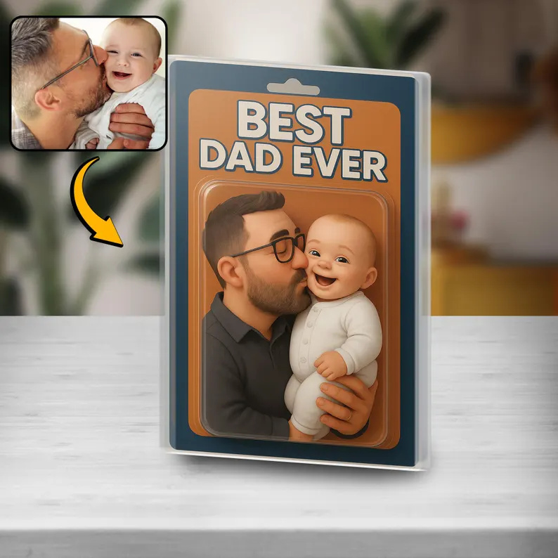 Personalized Photo Dad And Kids Action Figure Acrylic Block Plaque For Father's Day Gift