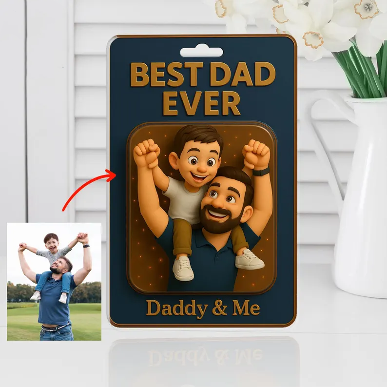 Personalized Photo Dad And Kids Action Figure Acrylic Block Plaque For Father's Day Gift