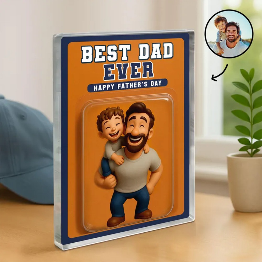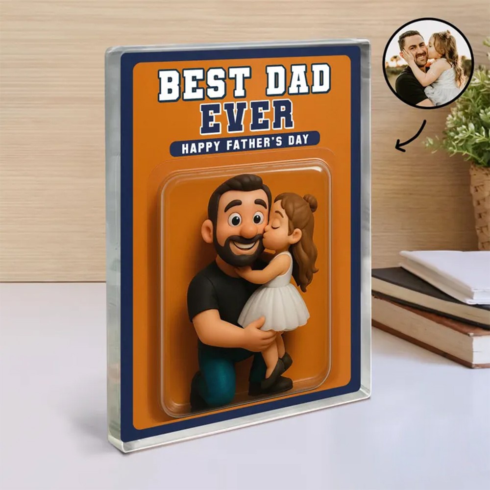 Personalized Photo Dad And Kids Action Figure Acrylic Block Plaque For Father's Day Gift